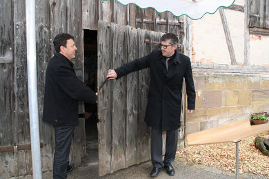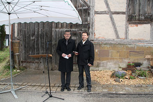 Übergabe der Informationstafeln durch die Sponsoren. Die Tafeln stehen heute an den historisch markantesten Stellen des Ortes und der nahen Umgebung.