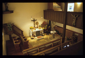 Der Einbau eines neuen, des heutigen, Altars erfolgte im Zusammenhang mit der Renovierung im Jahre 1962. Beim Altarkreuz sind die Figur des Christus und das INRI-Band vermutlich aus dem 17. Jahrhundert. Sie wurden im Jahr 1962 von der Kirchengemeinde Walkersbach erworben.