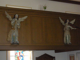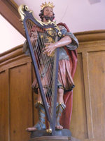 Besondere Aufmerksamkeit verdienen die Figuren. Der König David mit seiner Harfe ist eine gute Barockfigur des frühen 18. Jahrhunderts. Die Engel, von denen zwei Geige spielen und ebenfalls zwei Posaune blasen, sind um das Jahr 1700 entstanden. Die Figuren stammen vermutlich von einer Urbacher oder Welzheimer Orgel.