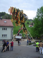 Am letzten Apriltag eines jeden Jahres wird in Walkersbach auf dem Dorfplatz der Maibaum in die Höhe gezogen – eine Aufgabe, die seit vielen Jahren von der örtliche Feuerwehr übernommen wird. In deren Hand liegt auch das Schlagen und Rebbeln des Festbaumes sowie das Binden der Kränze und Girlanden. Bei Letzteren erhalten die Feuerwehrmänner tatkräftige Unterstützung durch engagierte Frauen im Ort. Diese sind es auch, die die Männer und alle fleißigen Helfer an jenem Tag verköstigen. Unzählige junge und alte Bürger unseres kleinen Orts versammeln sich auf dem Dorfplatz und können so der Feuerwehr bei einer ihrer zahlreichen Aufgaben beobachten und unterstützen. Wurde früher der bis zu dreißig Meter hohe Baum allein durch Holzschwalben und Manneskraft in die Höhe gehievt, werden die Männer heute durch ein bis zwei Schlepper unterstützt.