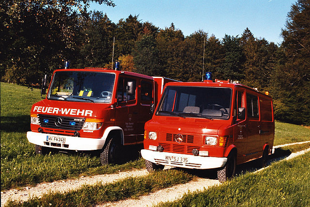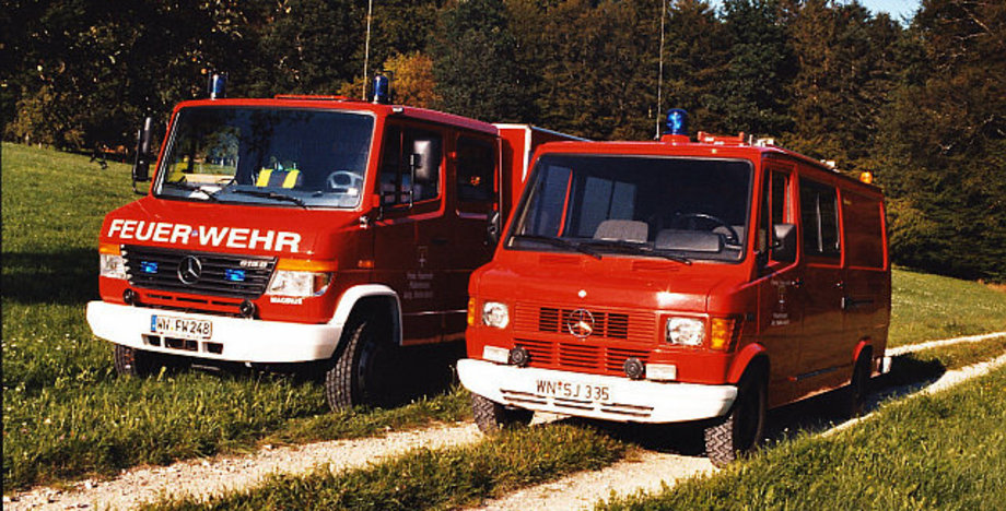 1983 wurde dann das erste Löschfahrzeug angeschafft – ein Tragkraftspritzen-Fahrzeug (TSF) vom Typ Mercedes-Benz 310. Dieses Fahrzeug war jedoch zu groß für die kleine Garage des alten Schulhauses, weshalb die Feuerwehr 1985 ins Bürgerhaus umzog. Nach diversen Umbauarbeiten standen der Feuerwehr-Abteilung dort zwei Garagen für das Fahrzeug und den Anhänger sowie Räume für Mannschaft und Geräte zur Verfügung. Das TSF verblieb bis 2004 im Dienst der Feuerwehr Walkersbach und wurde dann an die Feuerwehr Pfronstetten-Tigerfeld im Landkreis Reutlingen verkauft, wo es heute noch genutzt wird.