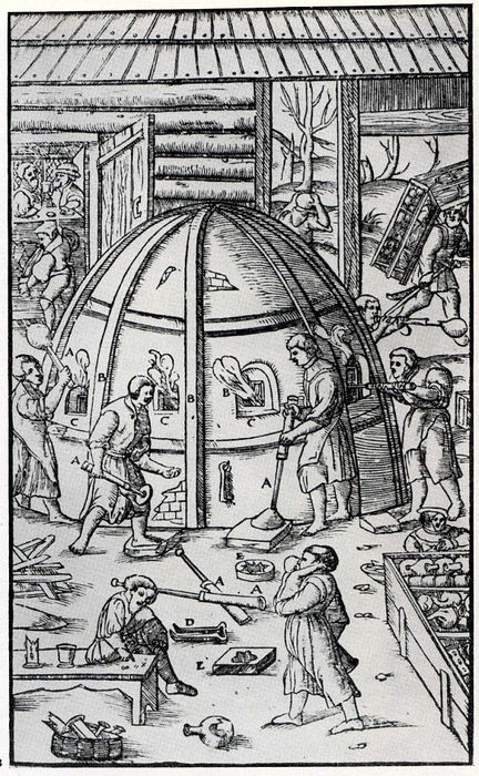 Wenn der Ofen nach etwa 20 Wochen ausgebrannt ist, hat der Hüttmeister auf seine Kosten einen neuen aufzurichten. Dabei haben alle Glasmacher mitzuhelfen. Sie haben die Steine zu diesem Ofen zu brechen. Auch die Kühl- und Scheitöfen haben die Glaser nötigenfalls zu erneuern. Genau abgegrenzt ist auch, wie weit sich die Glaser an der Herstellung der Häfen zu beteiligen haben.