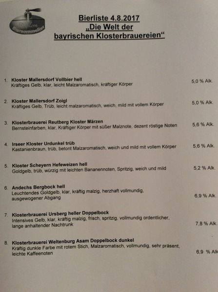 Verprobung von 10 Klosterbieren, inkl. Snacks